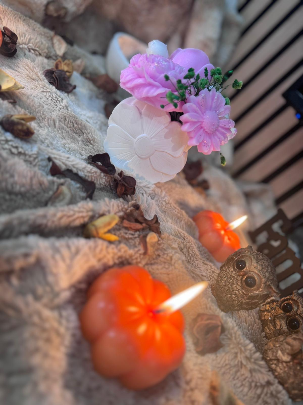 O Bouquet Eterno é composto por delicadas flores em vela artesanal, moldadas à mão, e uma base em gesso elegante, criando uma peça decorativa única e intemporal.